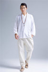 【Style】Simple, Modern, Soft, Comfort, Light, Pure Color, Men Zen Style Hangfu White Linen and Cotton T-shirts Tops ...