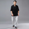 【Style】Simple, Modern, Soft, Comfort, Light, Pure Color, Men Tai Chi Style Hangfu Kungfu Zen Style Short Sleeve Linen...