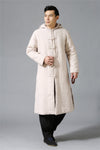 【Style】Simple, Modern, Soft, Comfort, Light, Pure Color, Men New Hangfu Kungfu Style Linen and Cotton Quilted Long Coat...