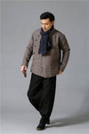 【Style】Simple, Modern, Soft, Comfort, Light, Pure Color, Men Chinese KungFu Style Quilted Linen and Cotton Coat 【Material】Linen...