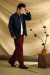 【Style】Simple, Modern, Soft, Comfort, Light, Pure Color, 2019 NEW! Men Simple Navy Blue Linen and Cotton Middle Coat...