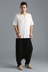 【Style】Simple, Modern, Soft, Comfort, Light, Pure Color, Men Casual Loose Cotton and Linen Printed Hanging Crotch Yoga Pants...