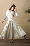 【Style】Simple, Modern, Soft, Comfort, Light, Pure Color, Women Simple Linen and Cotton Wrinkle Maxi Skirt 【Material】Linen and...