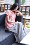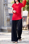 【Style】Simple, Modern, Soft, Comfort, Light, Pure Color, Short-Sleeve blouses   【Material】Linen and Cotton   【Color】White, Pink, Red (...