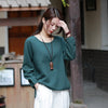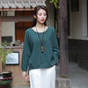 【Style】Simple, Modern, Soft, Comfort, Light, Pure Color,  Round Neckline Textured Long Sleeved Tops   【Material】Linen and Cotton  ...