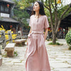 【Style】Simple, Modern, Soft, Comfort, Light, Pure Color, Women Reto Hanfu Type Linen and Cotton V-necked Jacquard Dress  ...