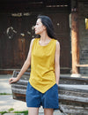 【Style】Simple, Modern, Soft, Comfort, Light, Pure Color, Sleeveless summer thin vest style t-shirt with pocket   【Material】Linen and...