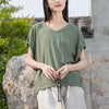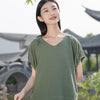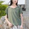 【Style】Simple, Modern, Soft, Comfort, Light, Pure Color, 2022 Summer NEW! Women Retro Style Linen and Cotton V-Necked Short...