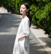 【Style】Simple, Modern, Soft, Comfort, Light, Pure Color, 2021 SUMMER NEW! Women Modern Style Linen and Cotton Middle Sleeves...
